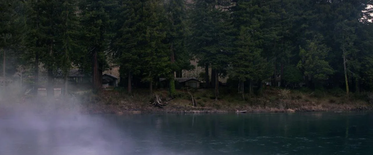 Suddenly, a man bursts from the woods, the same man from the bear trap. Relief washes over his face as he spots the river. As he lunges from the bank toward the water, he is ripped backward into the woods. Gone.